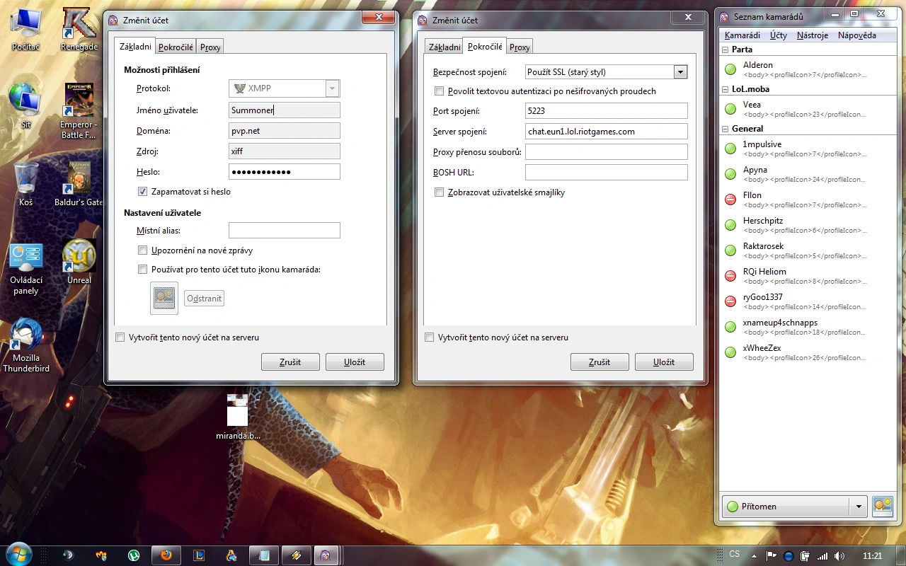 League of Legends používá pro chat protokol XMPP (dříve známý jako Jabber). Tento protokol podporují pouze multi-protokoloví klienti (nejčastěji používaní jsou: Miranda, Pidgin a QIP) - takže zapomeňte na ICQ či Skype. Tak jsi pojďme ukázat jak na to (Pozn. tento návod funguje i na mobilní verze programů).