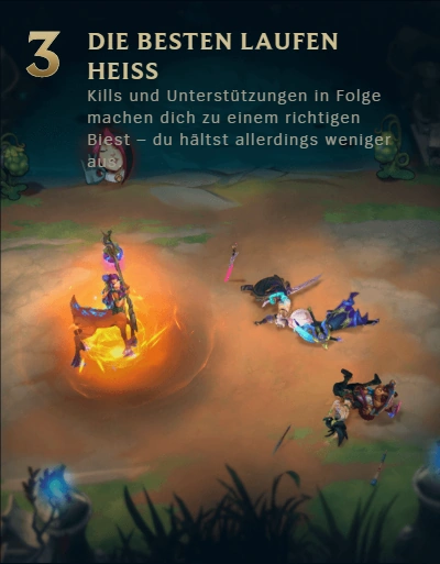 - Verbrennt nahe Gegner, Ablingzeiten sind halbiert und du erhälst 50 Manareg. pro 5 Sekunden oder 50 Energiereg. pro 5 Sekunden.