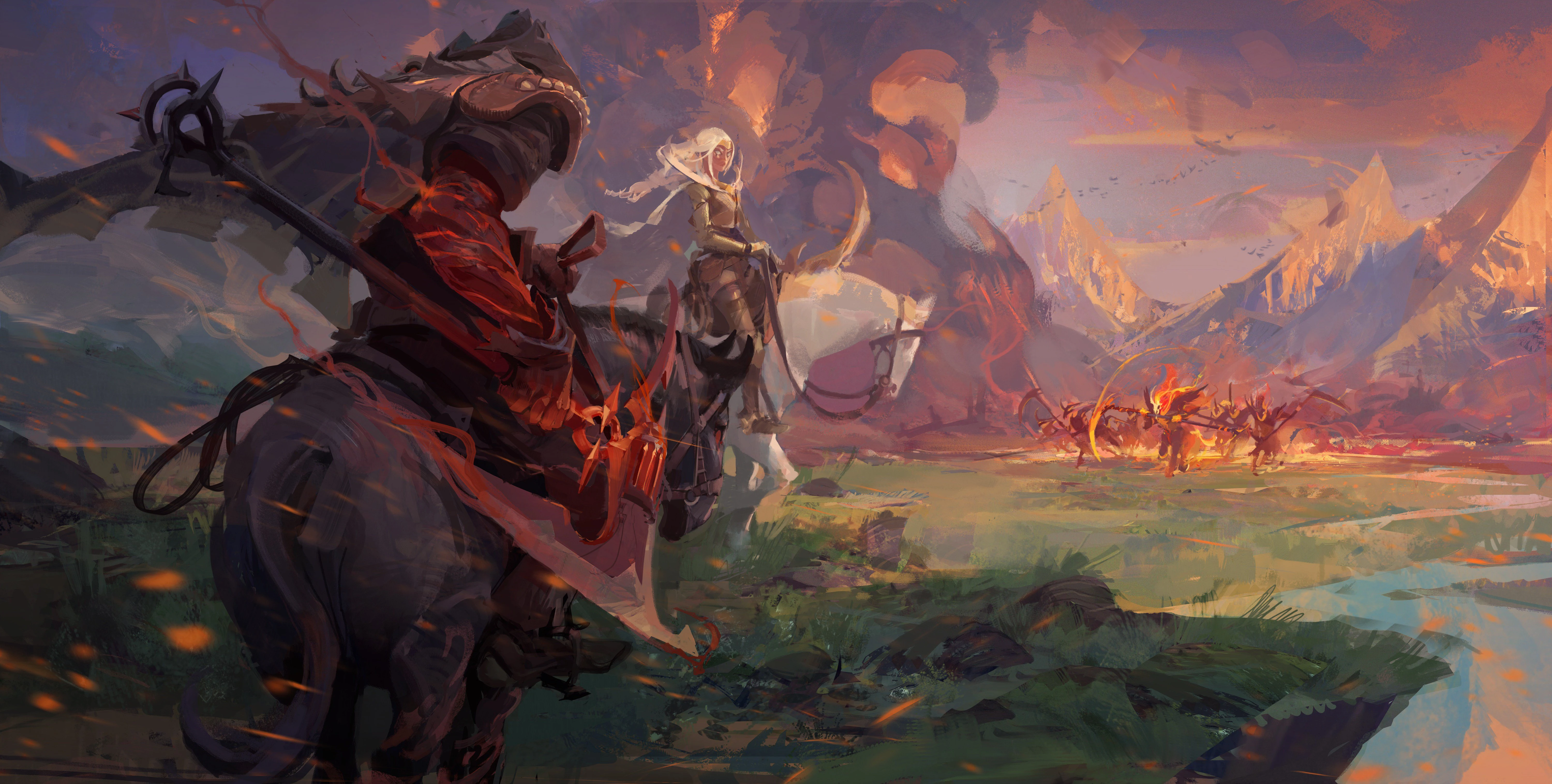 Das war eine schwierige Situation. Da er die Hand von Noxus war, erwarteten viele Adelshäuser, dass Darius Darkwill rächen würde. Er kannte und schätzte den in Ungnade gefallenen General Swain jedoch und hatte sich einige Jahre zuvor gegen seine Entlassung aus dem Dienst ausgesprochen, die aufgrund einer fehlgeschlagenen Offensive in Ionia erfolgen sollte. Die Eide der Hand galten Noxus und keinem bestimmten Herrscher, und Swain war ein Mann, der offen über seine neue Vision für das Reich sprach. Darius erkannte, dass dies ein Anführer war, dem er zu folgen bereit war … doch Swain verfolgte andere Absichten.