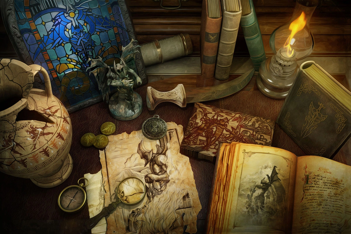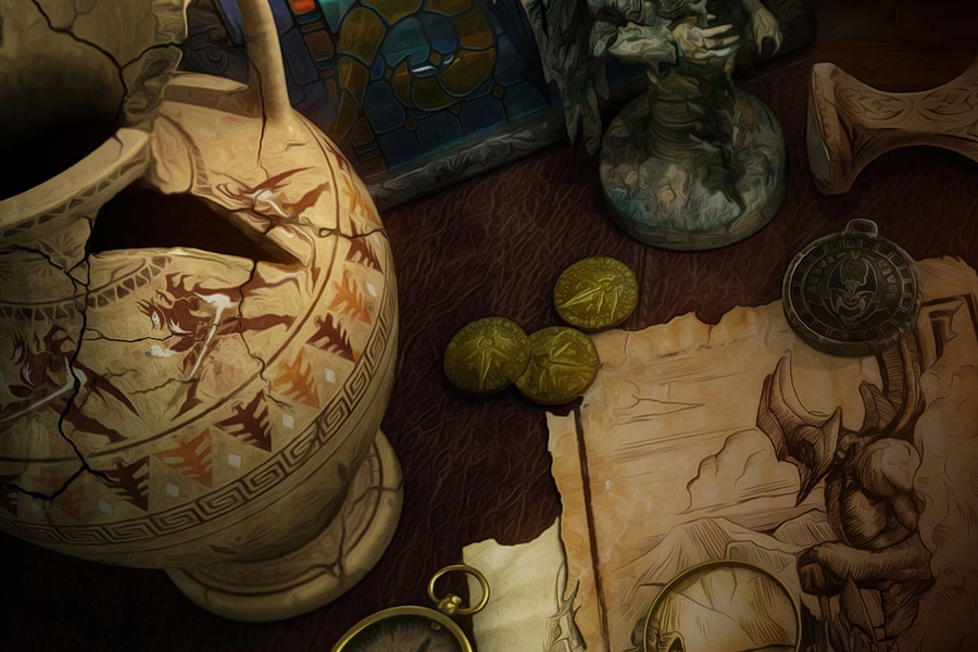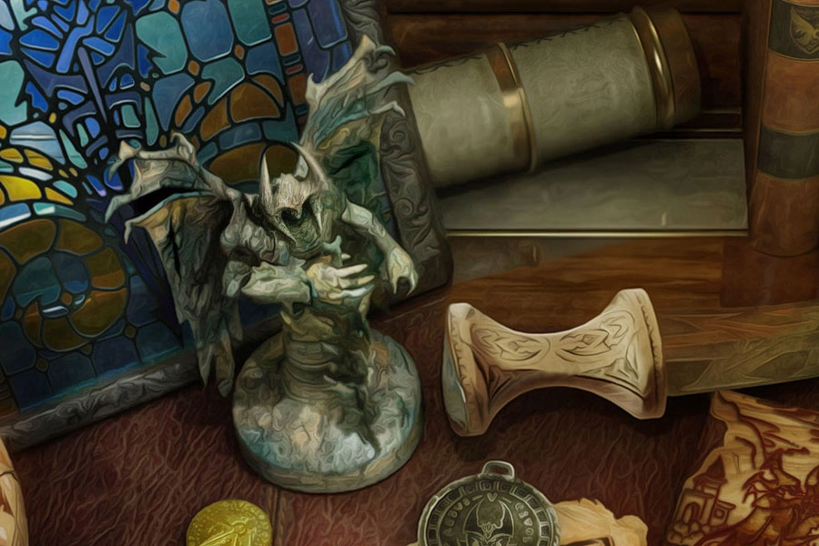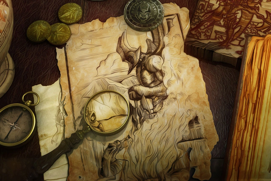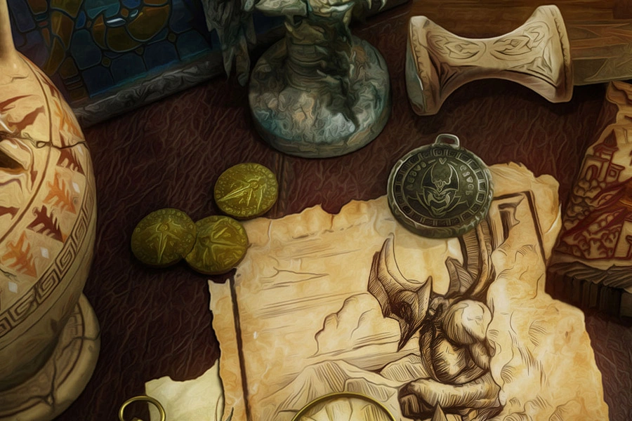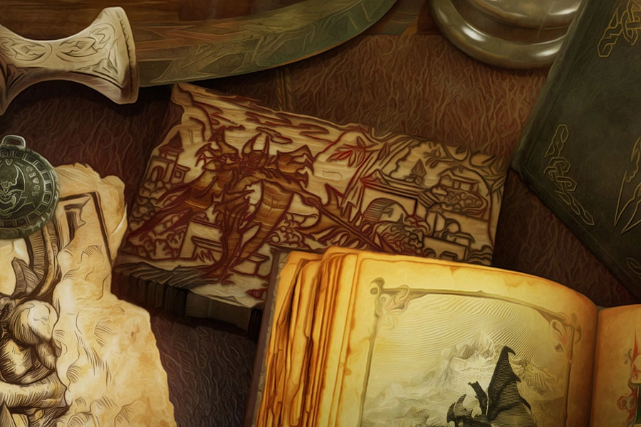 Ich habe alles auf meinem Schreibtisch zusammengesammelt, damit ihr einen Blick drauf werfen könnt. Das Wichtige daran ist, dass diese Relikte in ganz Runeterra gefunden wurden und aus verschiedenen, miteinander nicht in Verbindung stehenden Zeitaltern stammen. Die Sache ist die ... sie haben alle eine Gemeinsamkeit: sie zeigen eine dunkle , eindeutig menschlich, mit einer gezackten