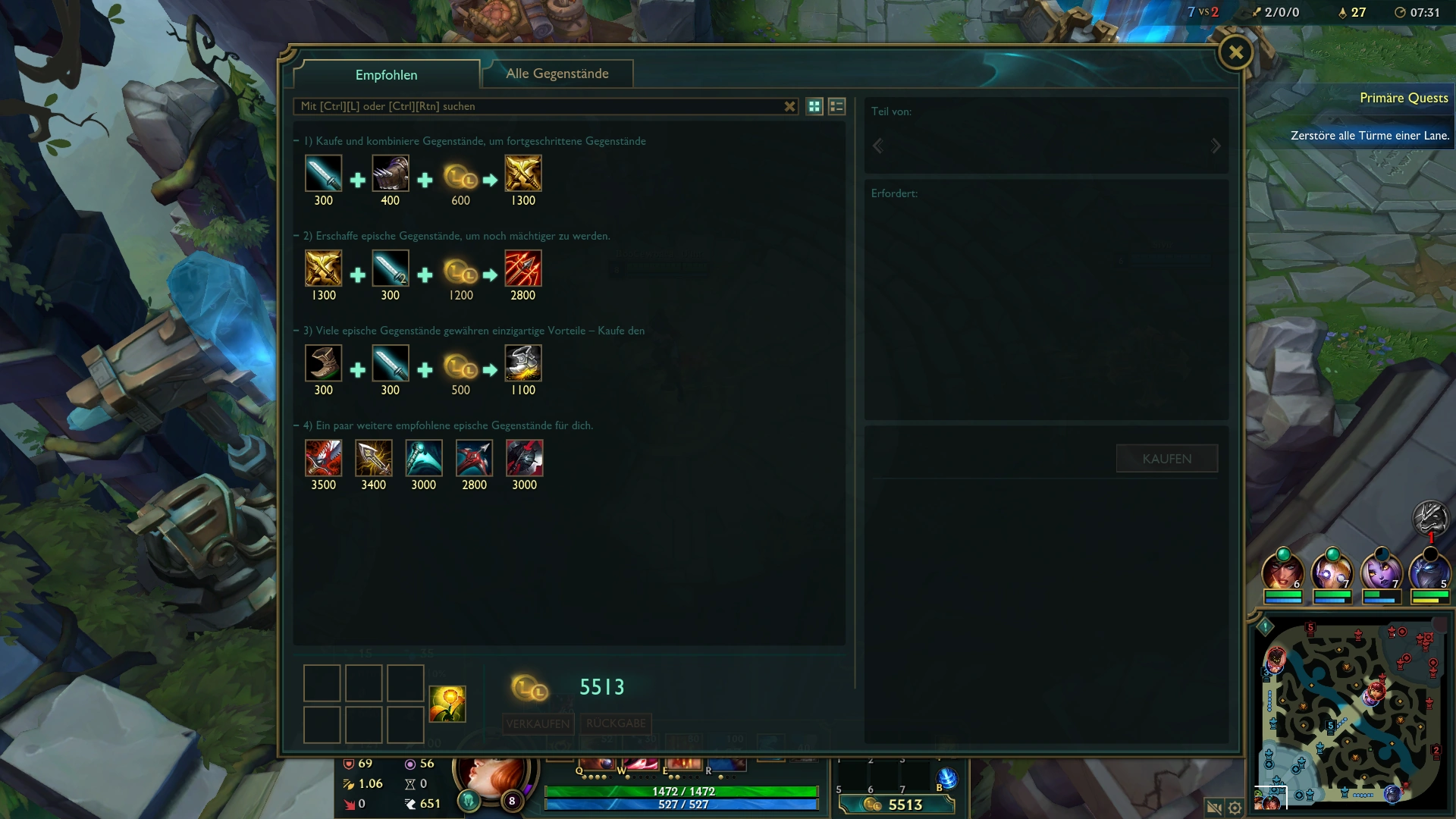 Motto: Kaufe Gegenstände beim Händler, um deinen Champion noch stärker zu machen.