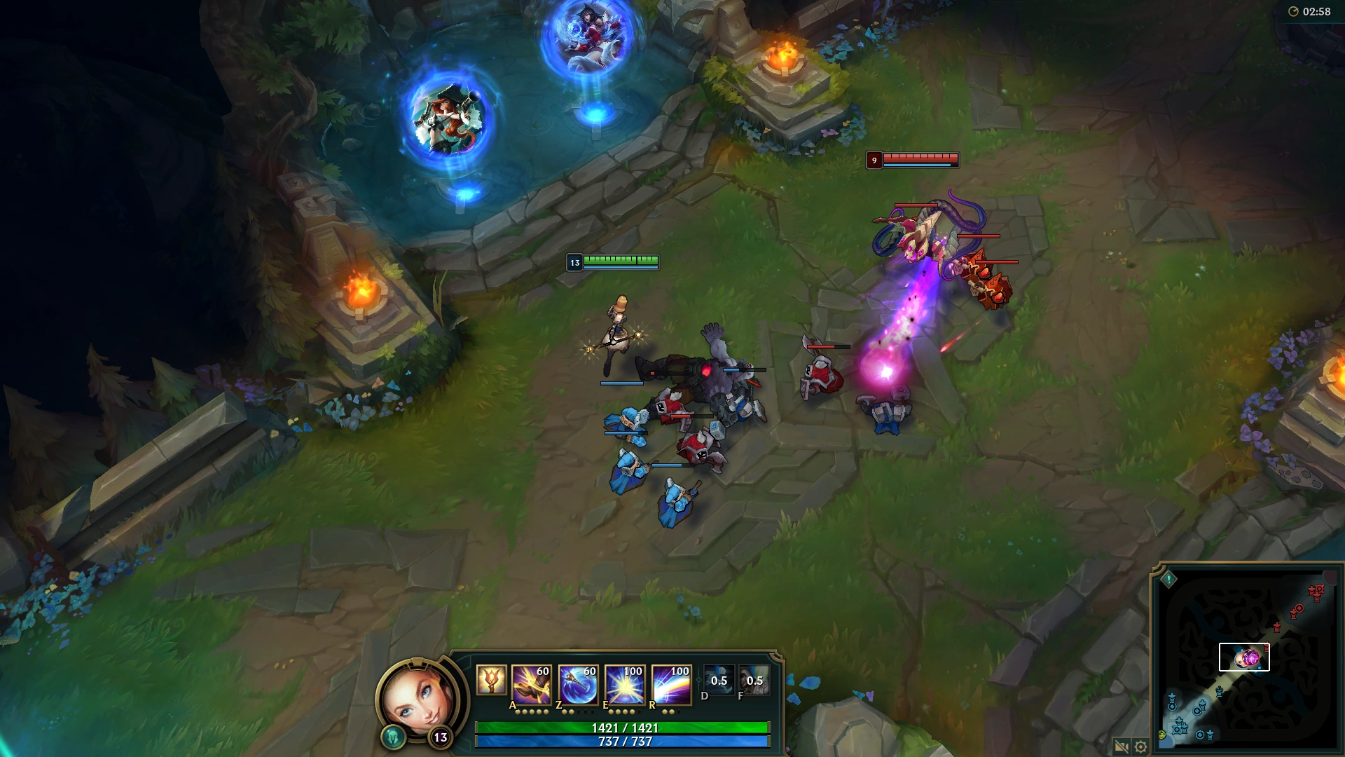 mittleren Lane, welche man nicht verlassen kann. Der Spieler startet als auf Championstufe 13.
