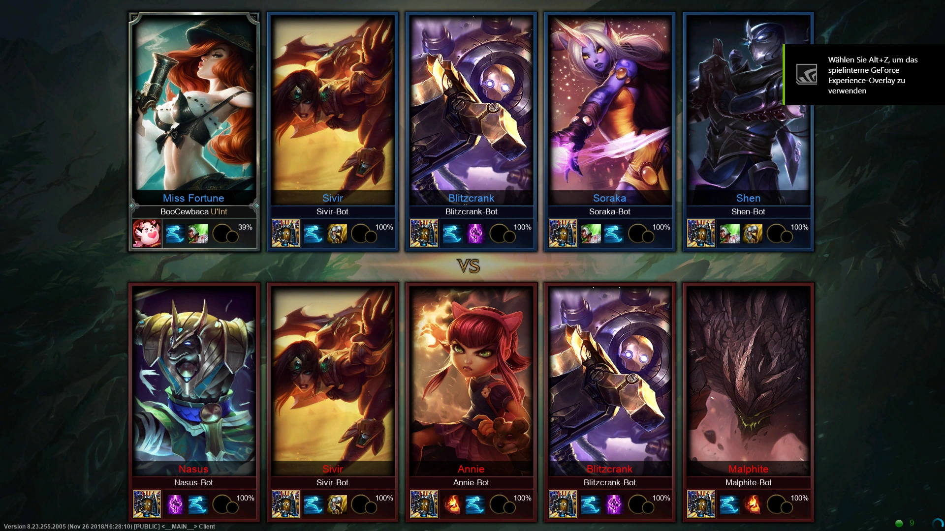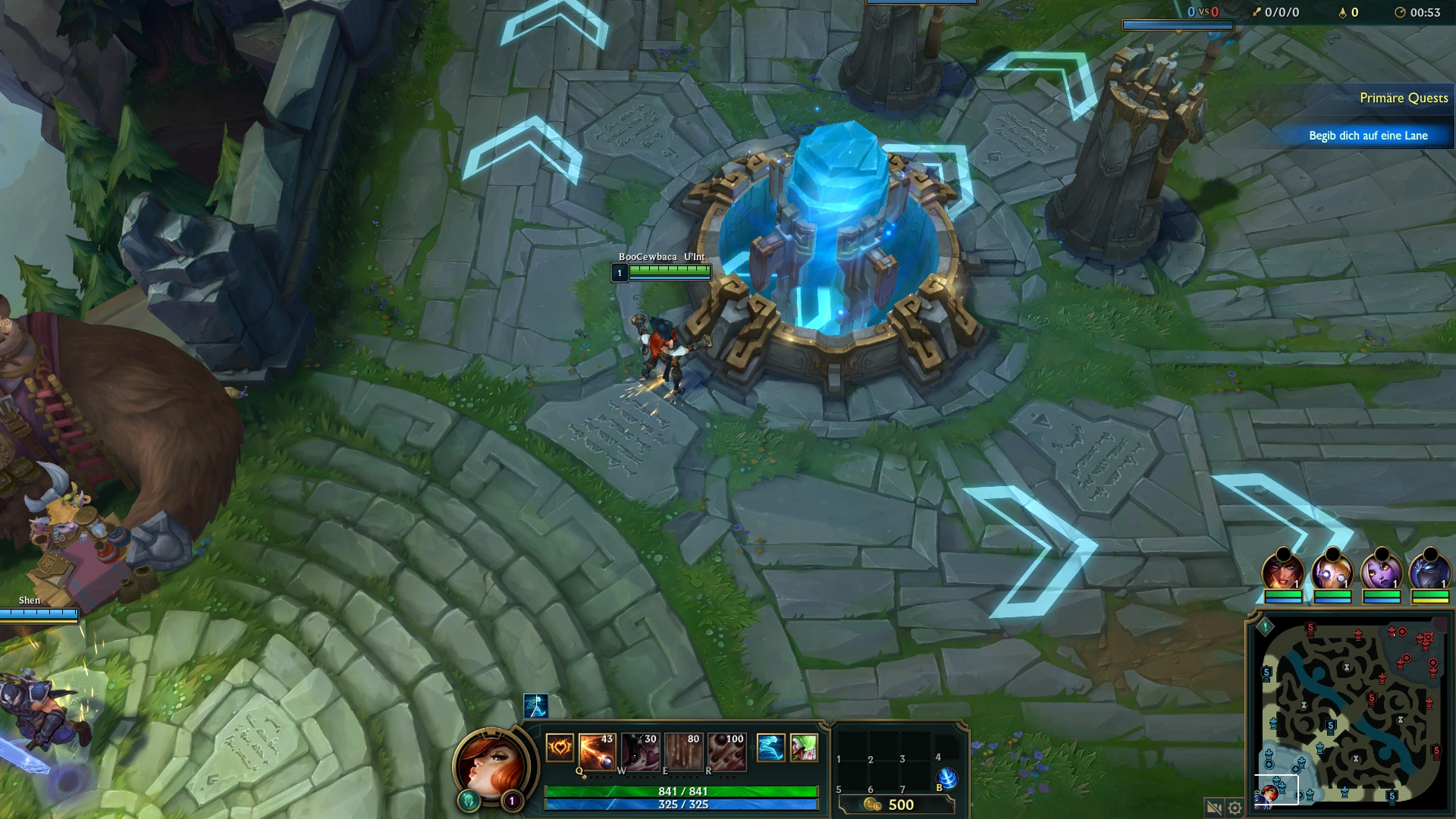 Dieses Tutorial begann bereits in der Championauswahl, in welcher man die Wahl zwischen und hatte. ( soll auch auswählbar gewesen sein). Danach wurde der Spieler mit Bots in ein Spiel geworfen: