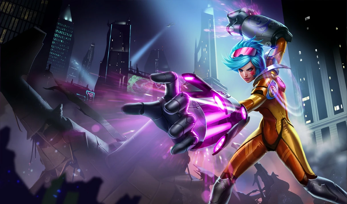 Die ehemalige Bandenanführerin stand jetzt in Diensten der Wächter und hatte die chem-betriebenen Pulverisierer-Handschuhe durch brandneue Atlas-Hextech-Prototypen ersetzt.