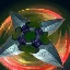 Активация: Акали выпускает пять кунаев в выбранном направлении, которые наносят магический урон всем пораженных противников. Противники в дальней области поражения