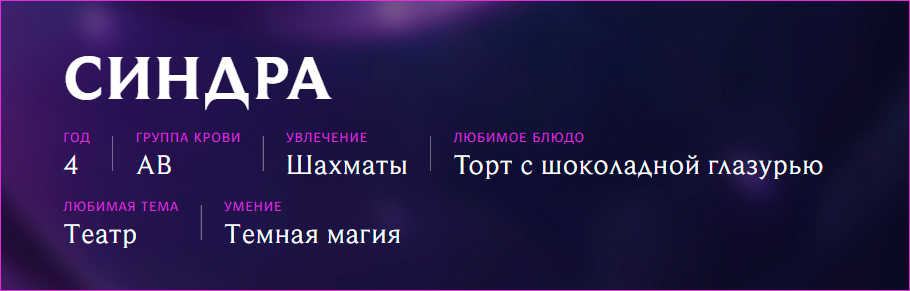 Синдра – внушающая страх и уважение Звездная защитница первой волны. Ее история, как и история Жанны, сокрыта завесой тайны. Сейчас она исполняет роль советчицы команды Ари. Несмотря на то что Ари ей доверяет, кое-кто ставит под сомнение мотивы ветерана и подозревает, что Синдра готова на все ради достижения своих личных амбиций.
