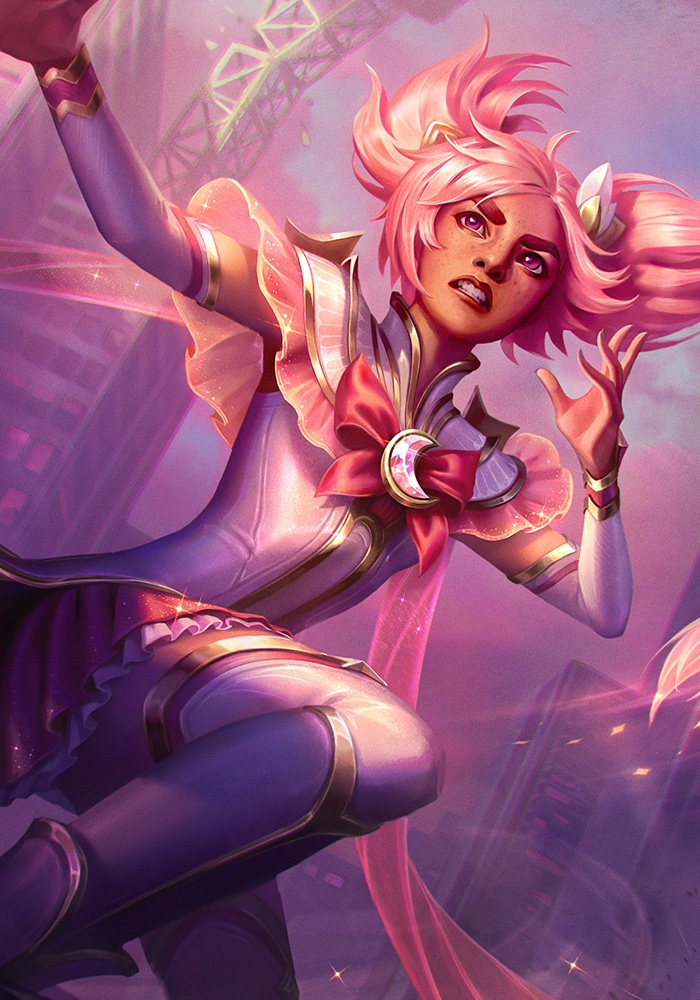 Джинкс – чересчур импульсивная и иногда циничная звездная защитница – обожает мощные сверкающие взрывы, что не может не огорчать всю ее команду. Но когда начинается бой, Джинкс всегда бросается вперед, чтобы защитить остальных, особенно свою подругу детства Люкс.