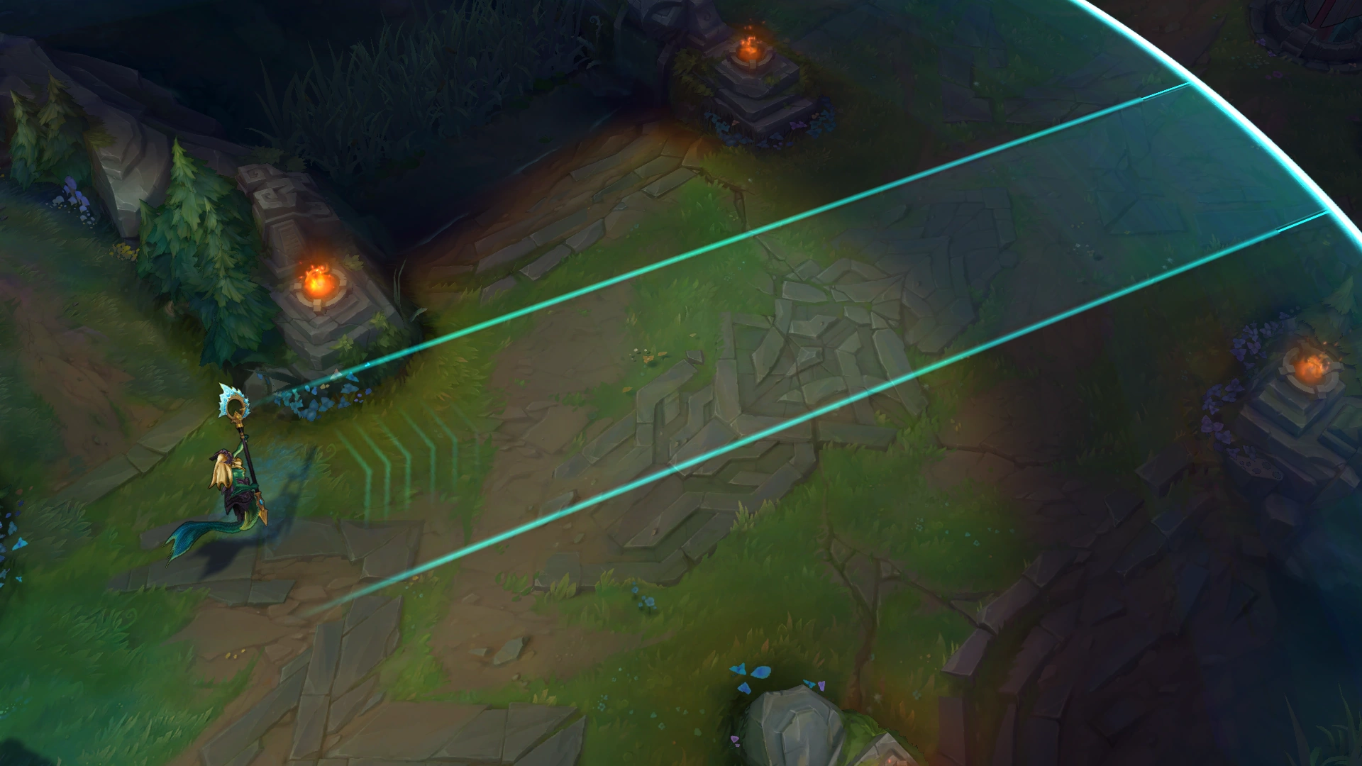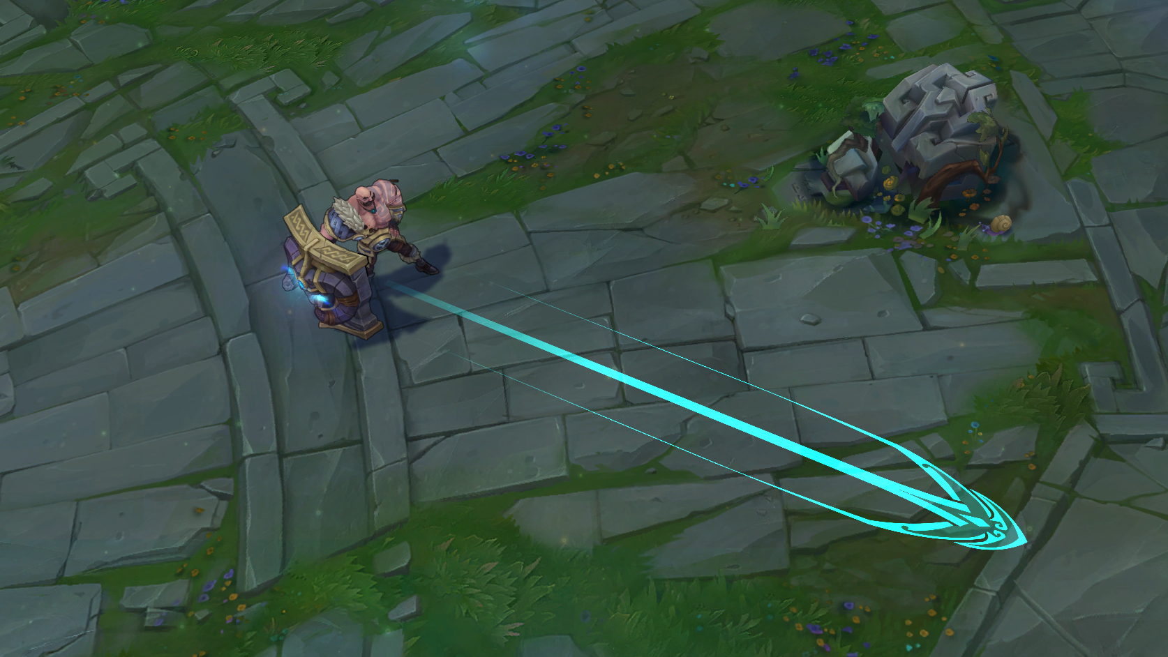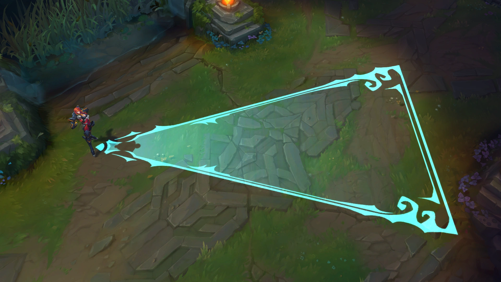 Если направленное умение обладает большой дальностью поражения, то указатель-стрелка имеет другую форму и при определенной дальности курсора от источника "распадается" на основание и саму стрелку. У некоторых чемпионов эти индикаторы снабжаются дополнительными художественными деталями.