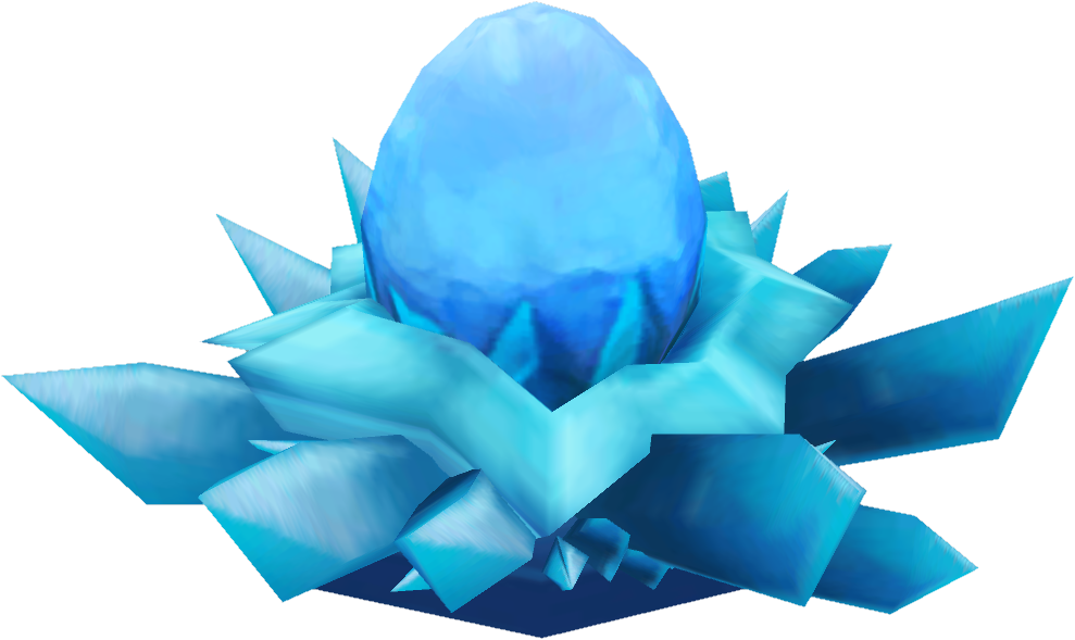 Anivia is massive eagle-like creature composed entirely of crystalline blue ice. She also has a single fuchsia crystal on her forehead. Her egg form is an icy globe which glows with white magic and appears swaddled in a nest of icy spikes.