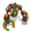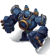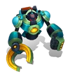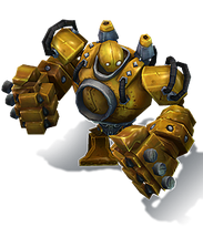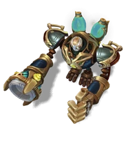 Blitzcrank is an enormous, near-indestructible automaton from Zaun, originally built to dispose of hazardous waste. However, he found this primary purpose too restricting, and modified his own form to better serve the fragile people of the Sump. Blitzcrank selflessly uses his strength and durability to protect others, extending a helpful metal fist or burst of energy to subdue any troublemakers.