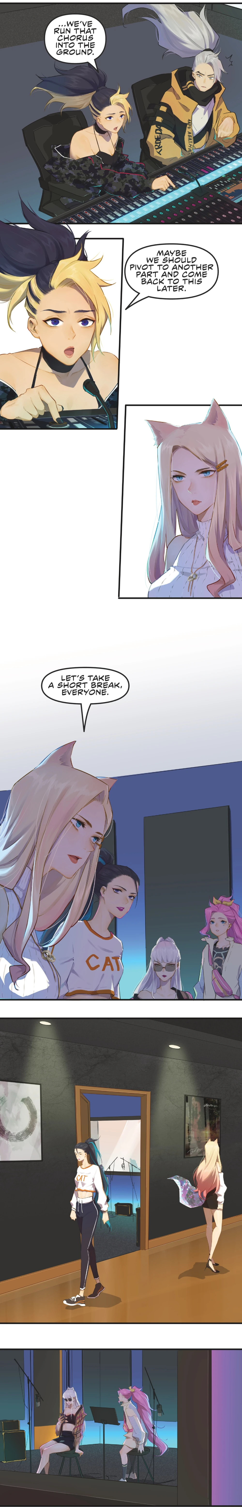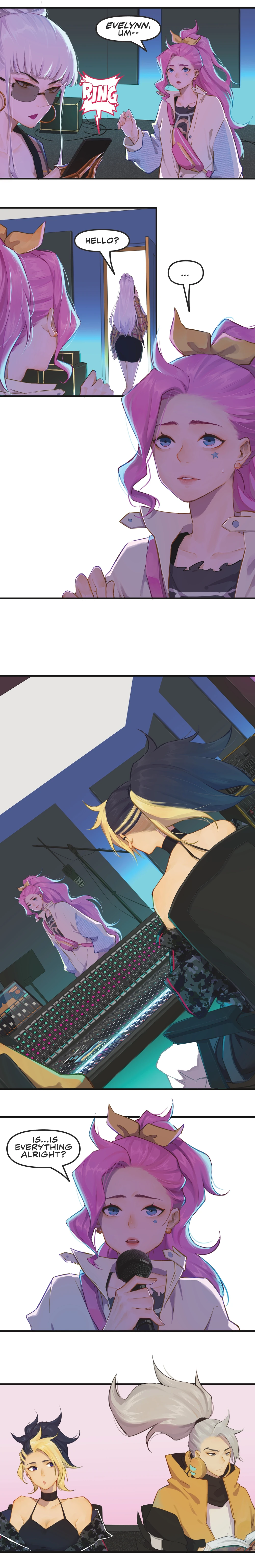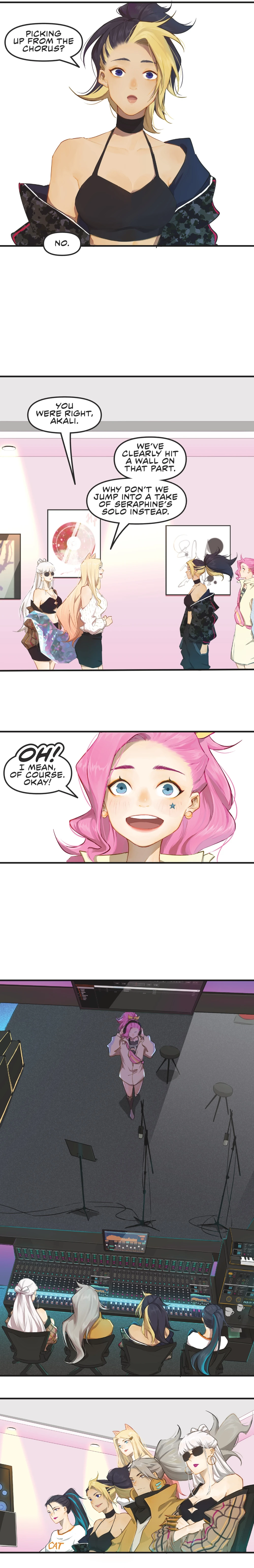 In a difficult moment during a recording secession, Akali reassures a nervous Seraphine that K/DA's bonds run deep.