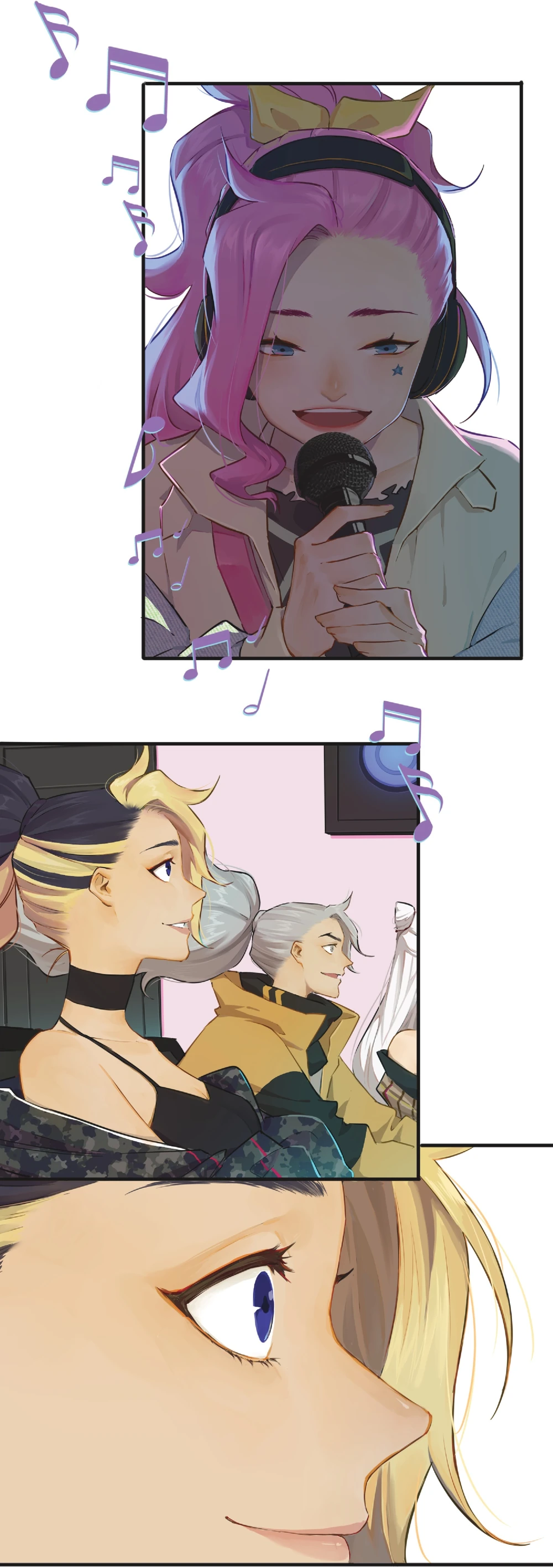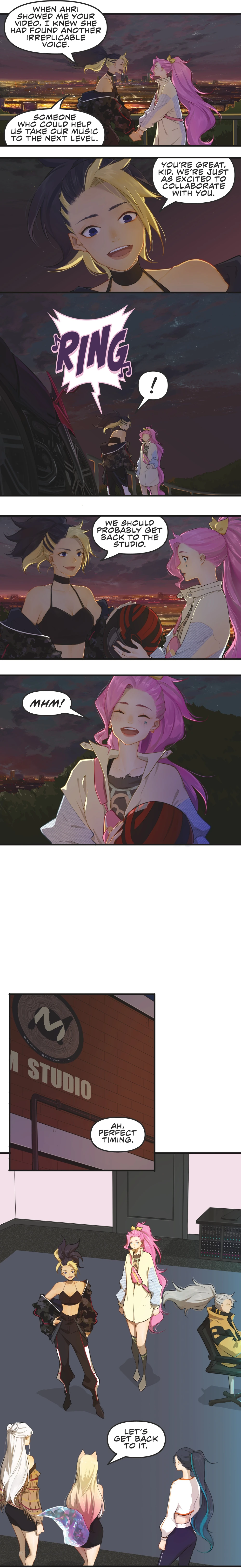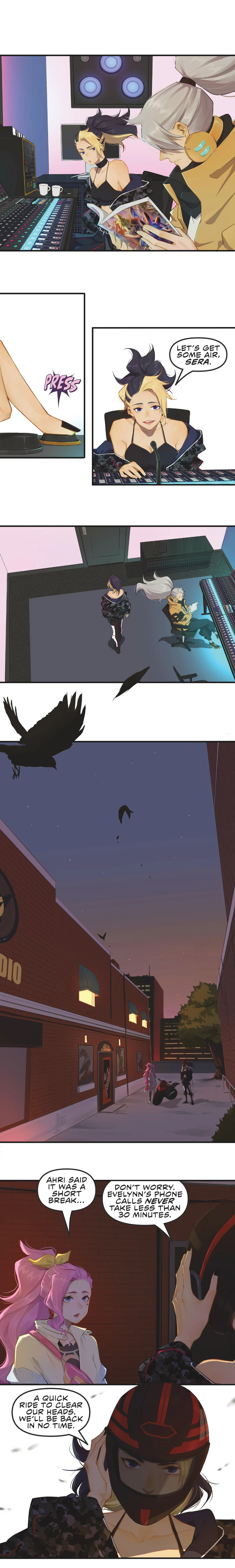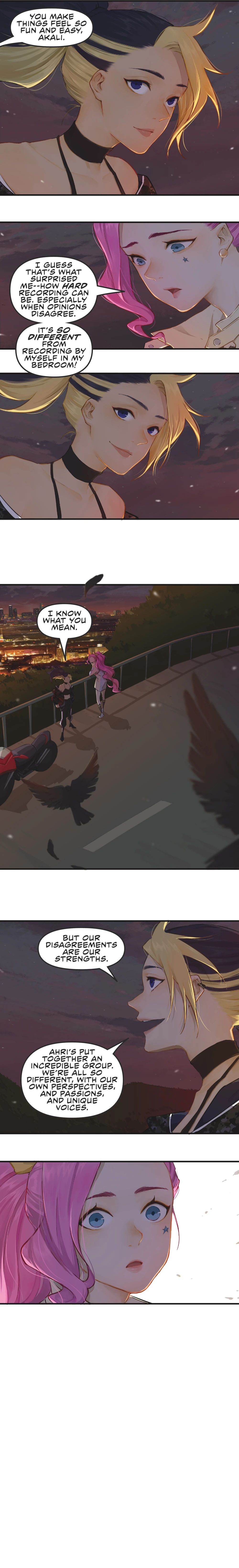 In a difficult moment during a recording secession, Akali reassures a nervous Seraphine that K/DA's bonds run deep.