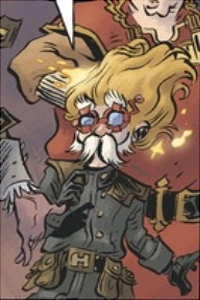 Heimerdinger is a skinny light skinned Yordle. His most prominent feature is his lush blond hair on his head (alternating between curly and straight), blue eyes, as well as his white mustache. He wears typical laboratory dark grey coat, gloves, as well as goggles that protect him during dangerous experimentation.