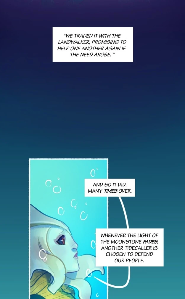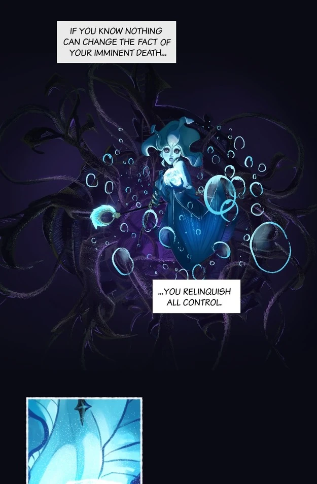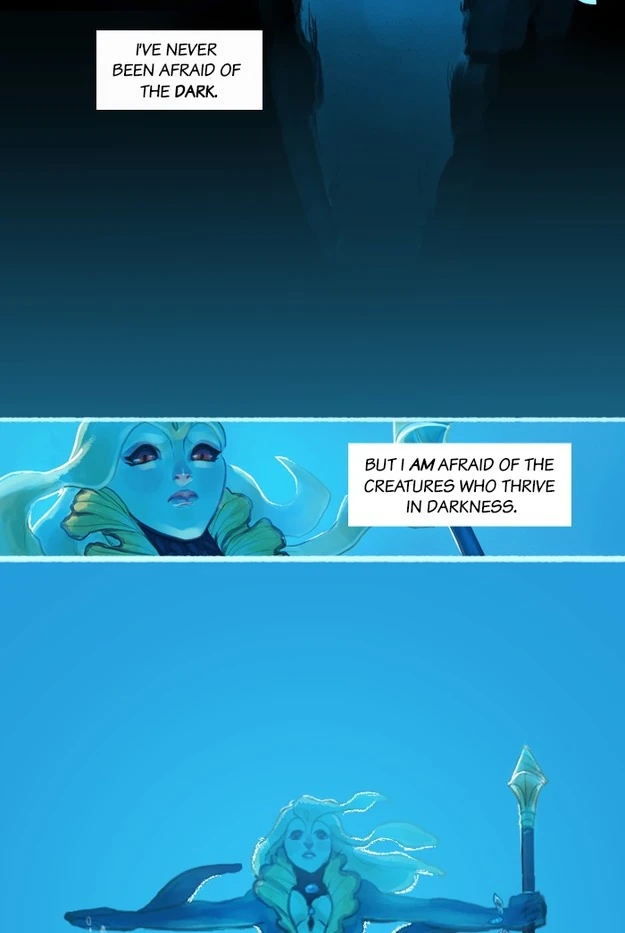 Deep in the oceans of Runeterra, the Marai are protected from terrors by the light of a moonstone. Through an ancient ritual, the Marai choose one of their people to dive into the abyss and retrieve an abyssal pearl, which is exchanged with a landwalker for the moonstone. Their chosen Tidecaller has not returned. Nami, a headstrong girl of the Marai, decides to descend into the black before the moonstone's light dims forever…