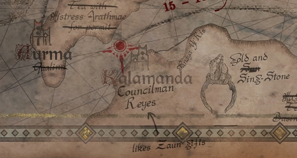 | Reyes | A Councilman of the city of Kalamanda. House Medarda of Piltover knowns that they prefers Zaunite gifts during trade. |
