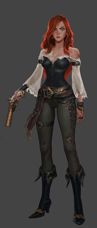 Sarah Fortune was born to the famous weapons manufacturer Abigail Fortune (her father's name is unknown), and lived with her mother in Bilgewater. Her mother taught her to make weapons of all kinds, the most prominent being firearms. Little Sarah's life was quite happy and pleasant, until the well-known looter Gangplank went to her mother's business to demand that she create two powerful pistols, to which Abigail accepted and said that in a year she would have them made.