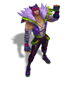 A leader of Ionia's growing criminal underworld, Sett rose to prominence in the wake of the war with Noxus. Though he began as a humble challenger in the fighting pits of Navori, he quickly gained notoriety for his savage strength, and his ability to take seemingly endless amounts of punishment. Now, having climbed through the ranks of local combatants, Sett has muscled to the top, reigning over the pits he once fought in.