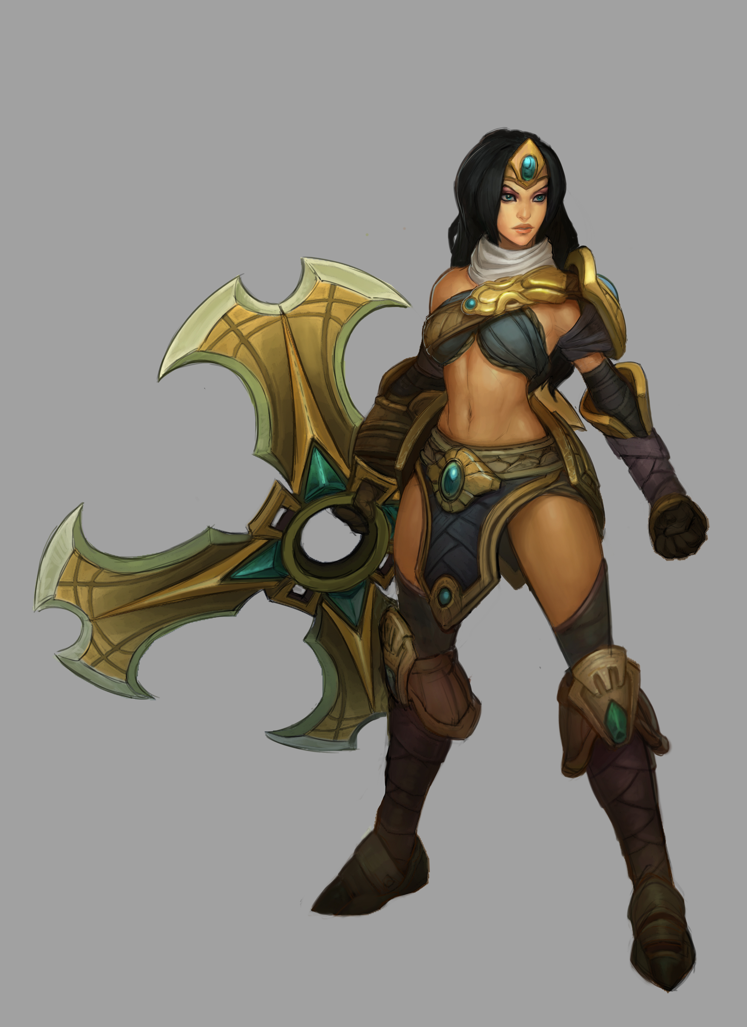 Sivir was born in Shurima, her childhood was very hard as her parents were killed by looters and she alone had to grow up on the streets along with other orphans stealing food from local markets and delving into ancient ruins in search of trinkets that she could sell.