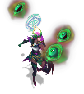 Syndra is a fearsome Ionian mage with incredible power at her command. As a child, she disturbed the village elders with her reckless and wild magic. She was sent away to be taught greater control, but eventually discovered her supposed mentor was restraining her abilities. Forming her feelings of betrayal and hurt into dark spheres of energy, Syndra has sworn to destroy all who would try to control her.