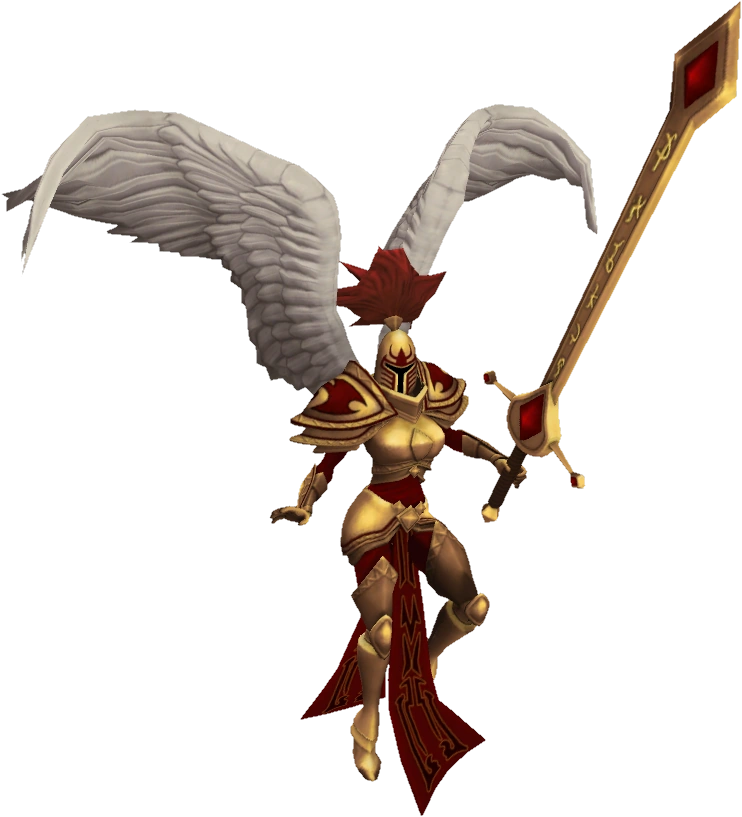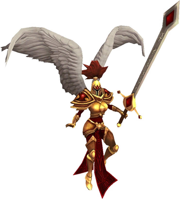 Though she has been absent from Demacia for many centuries, Kayle’s legend has inspired much of the kingdom’s culture and law. Grand statues and icons of the Winged Protector give strength to the heart of every warrior who marches to illuminate the night, and banish all shadows from their land.