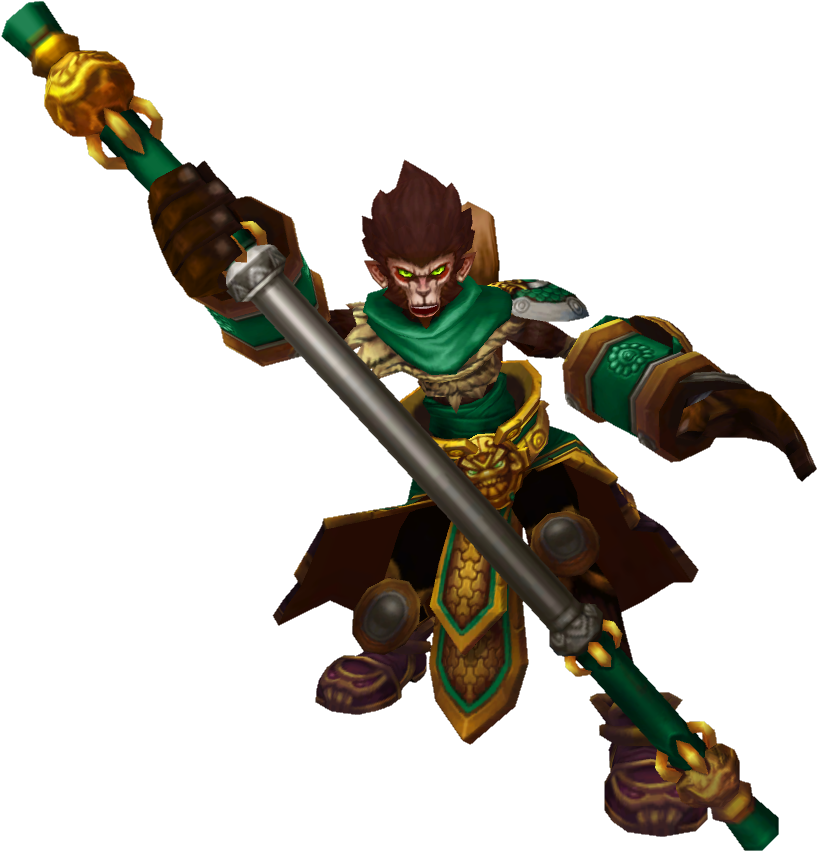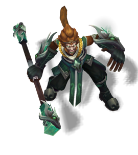 Wukong is a vastayan trickster who uses his strength, agility, and intelligence to confuse his opponents and gain the upper hand. After finding a lifelong friend in the warrior known as Master Yi, Wukong became the last student of the ancient martial art known as Wuju. Armed with an enchanted staff, Wukong seeks to prevent Ionia from falling to ruin.