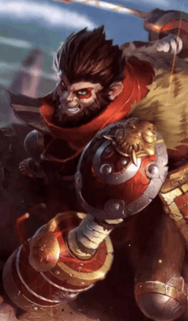 - Innate: Whenever Wukong himself damages an enemy champion, he generates a stack of Stone Skin lasting 5 seconds, refreshing on subsequent hits and stacking up to 3 times.