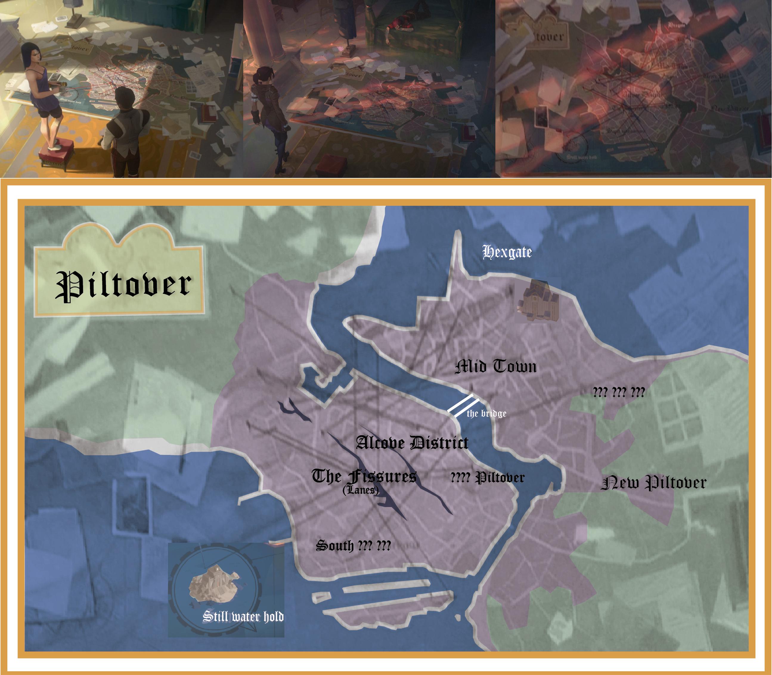 - Wharfside Docks: Located at the lower end of the Sun Gates, the quaysides of Piltover are always busy, with ships from every major port passing through the Sun Gates every day.